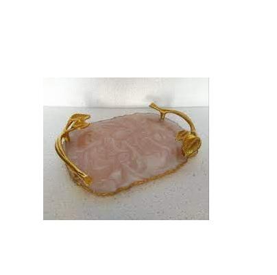 Plateau en résine époxy, plateau blanc et or en résine avec poignées en or, meilleure vente, plateau de service pour le petit déjeuner