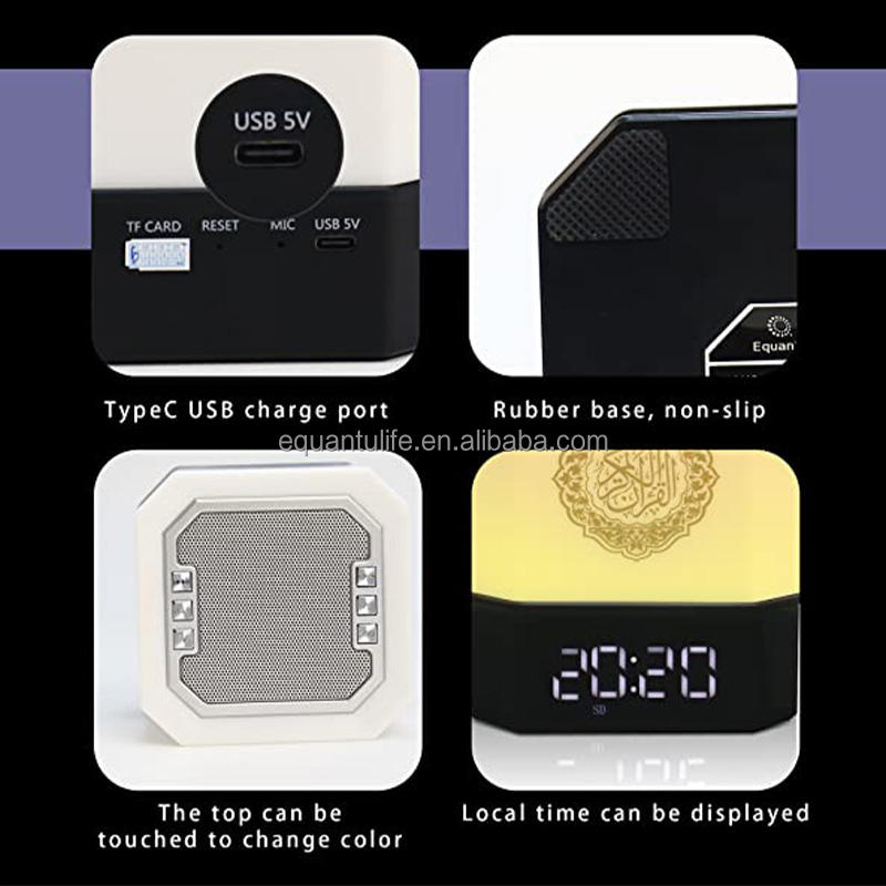 Equantu qb303 Lampe de table LED Coran avec haut-parleur, cadeau islamique, lecteur MP3 et fonction tactile