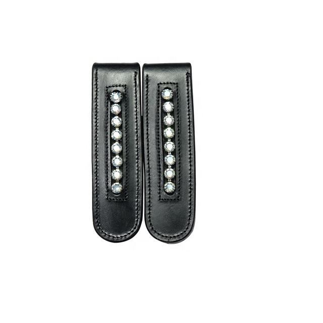Clips de bottes fantaisie équestres en cuir souple noir avec cristal blanc Hot Fix durable