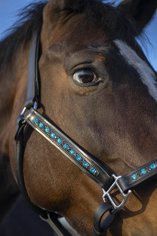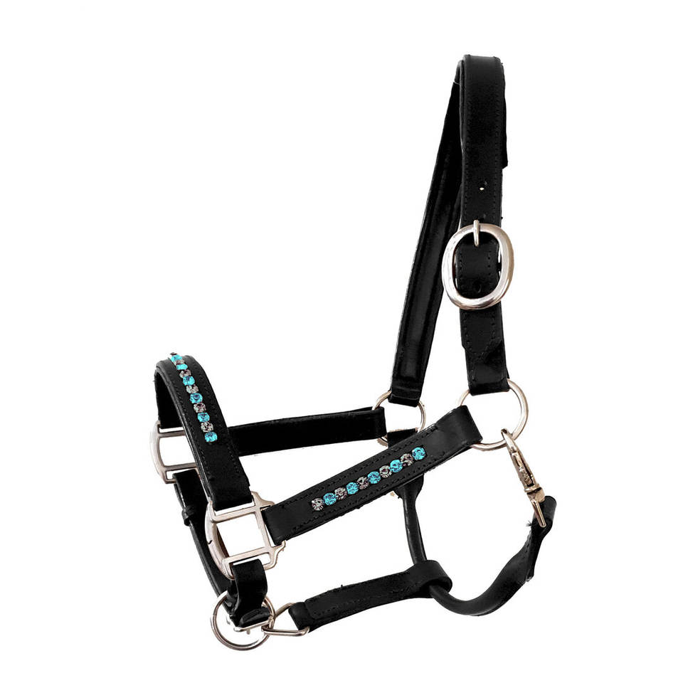 Equestrian Halter Bling Aqua Diamond Zwart Leer Horse Leather Halter Wholesale Price
