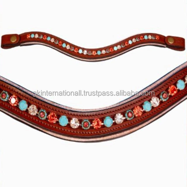 Bandeau de tête pour cheval en cuir vide à décorations équestres avec cristaux ronds colorés et boucles réglables personnalisées