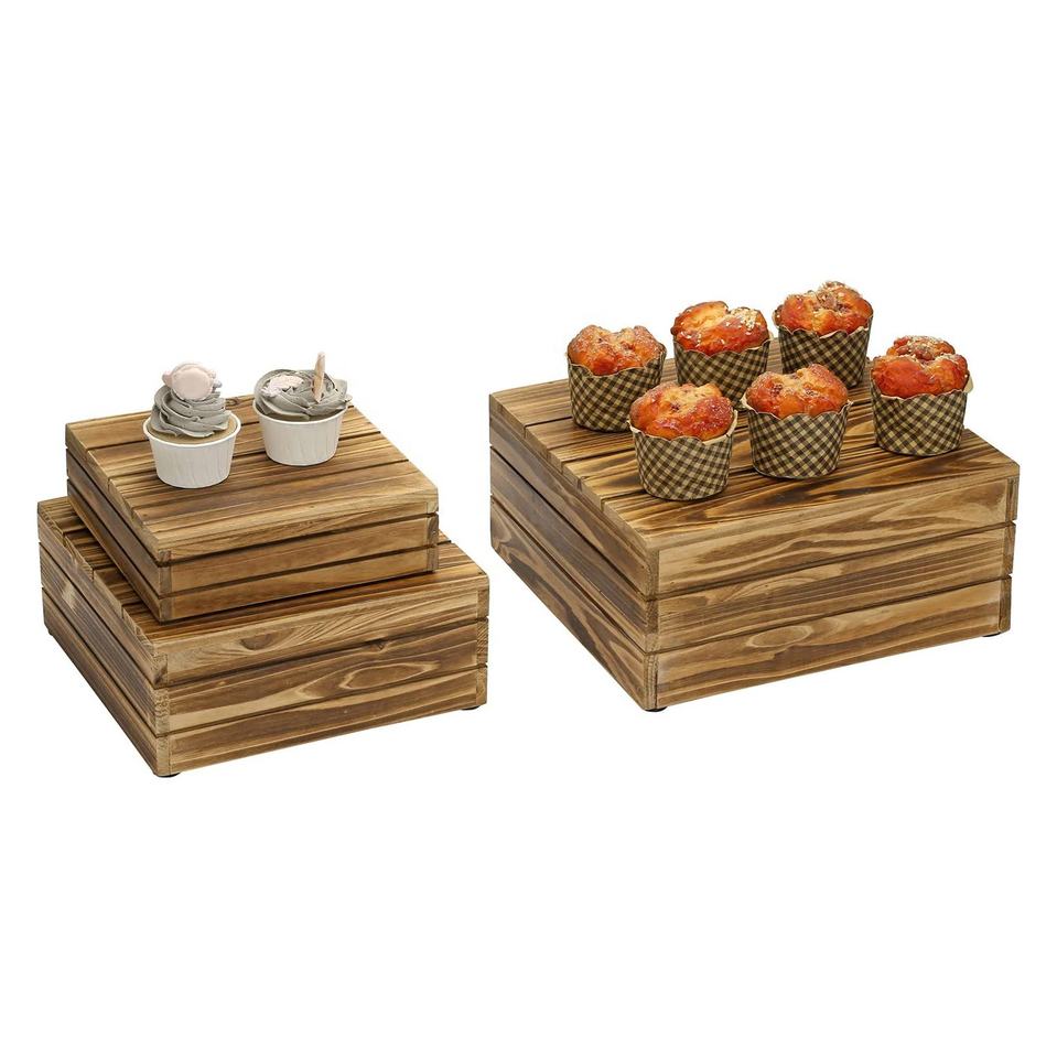 Équipement de buffet en bois d'hôtel, support de cupcake à plusieurs niveaux, gastronorm sapele, ensemble de buffet d'élévation