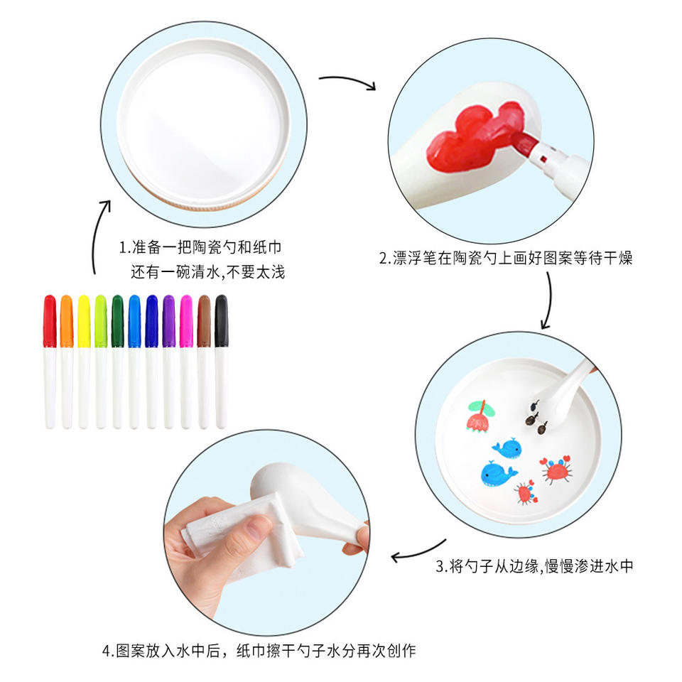 Marqueur effaçable enfants couleur à base d'eau tête épaisse suspendu à l'eau effaçable tableau blanc stylo magique encre cuillère peinture stylo