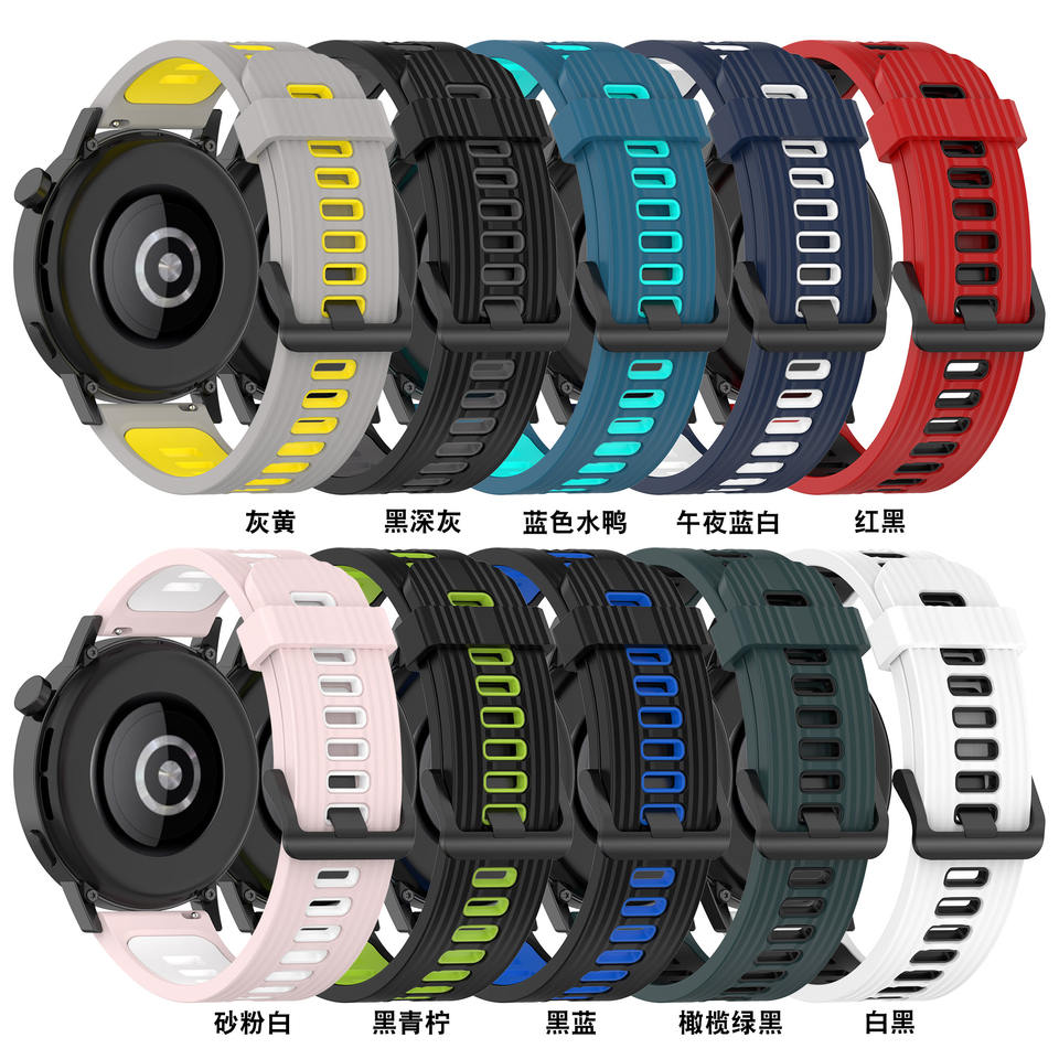Eraysun vente en gros 22mm 20mm bracelet de montre en silicone bicolore 46mm/42mm bracelets de sport souples bracelet de montre pour Huawei Watch GT3