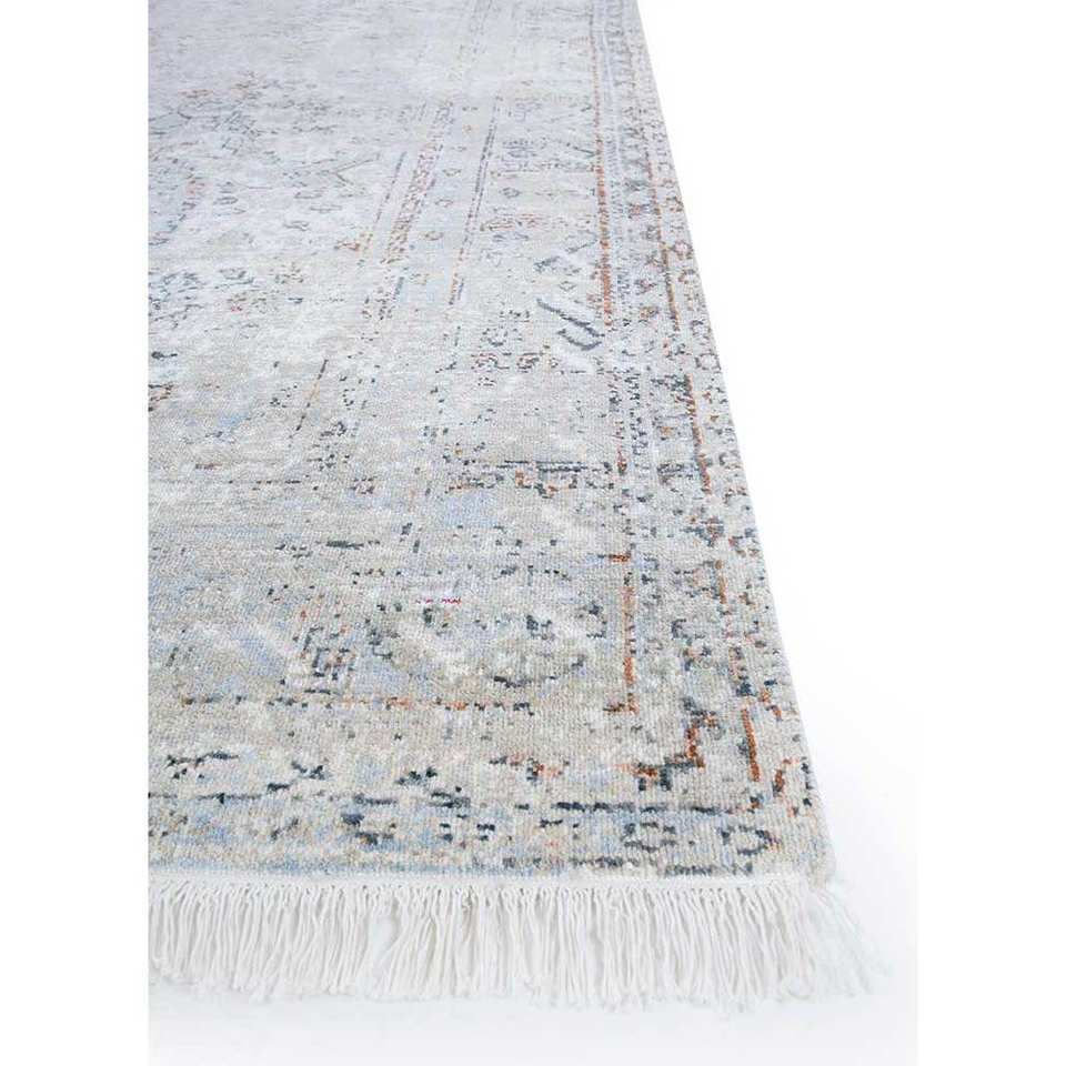 Tapis en laine noué à la main Erbe AKWL-3105, motif médaillon gris et noir, puzzle rectangulaire pour la maison, l'entrée de voiture, tapis rectangulaire fait main 9x12