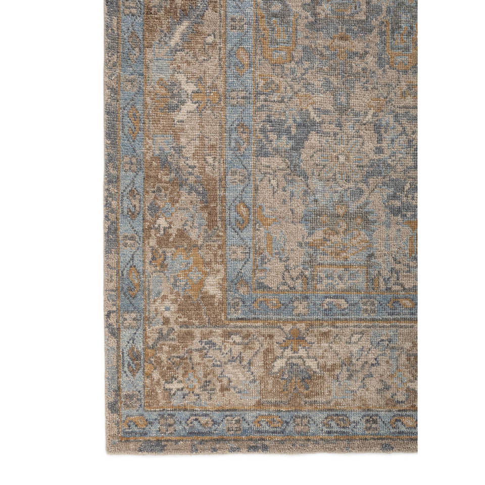 Tapis en laine noués à la main Erbe, beige et marron, grand format 9x12, motif médaillon rectangulaire en puzzle pour la maison, le couloir, l'entrée - GS-2008