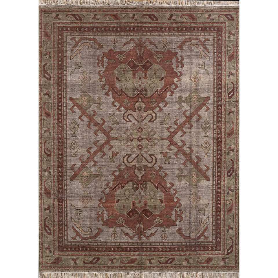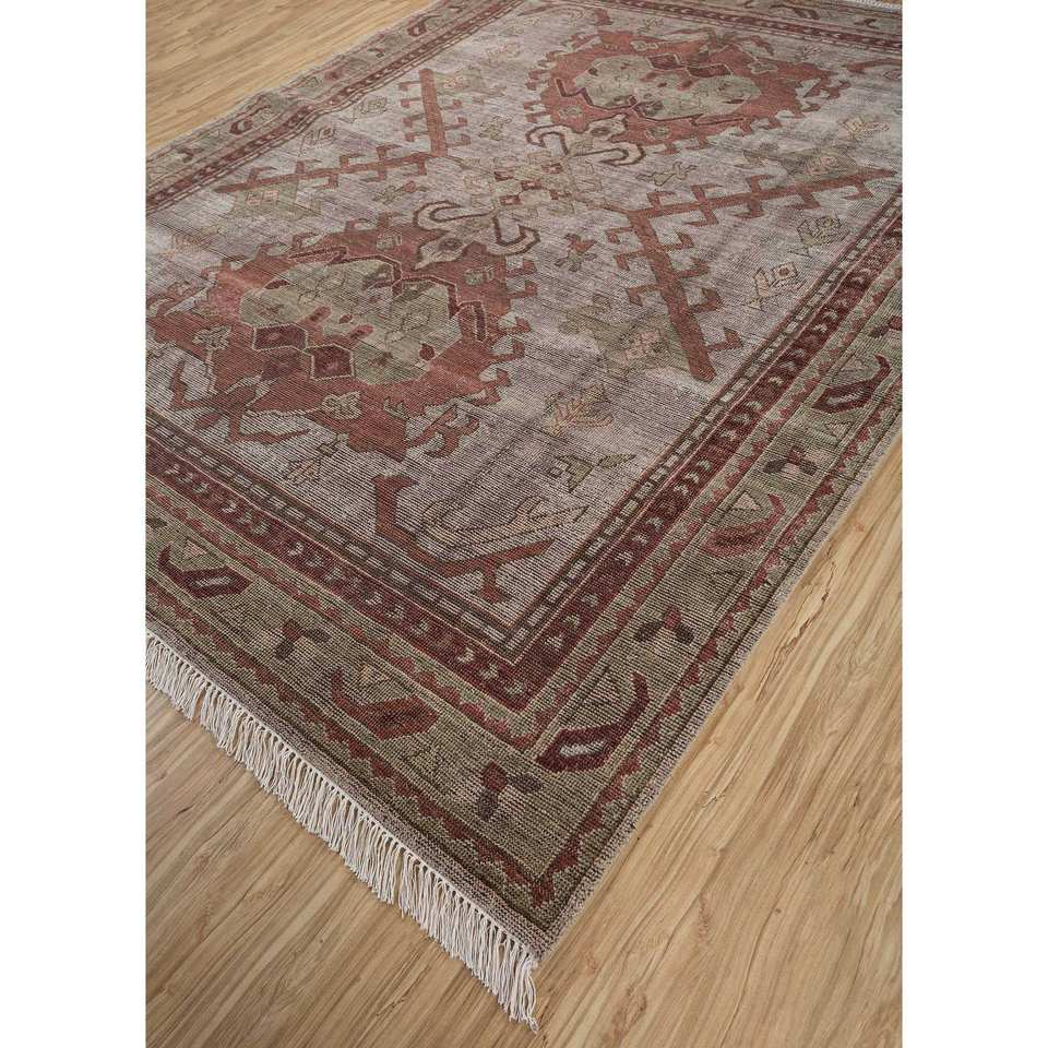Tapis en laine noués à la main Erbe, motif médaillon doré en relief, puzzle rectangulaire pour entrée de maison, 9x12, puzzle abstrait rectangulaire fait main