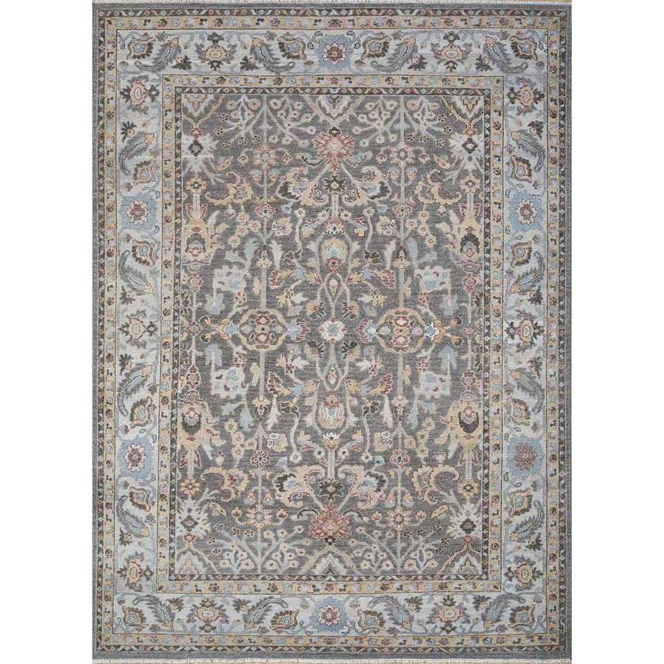 Tapis en laine noués à la main Erbe, gris et noir, motifs floraux et abstraits, tapis rectangulaire pour salon et couloir, modèle Enlp-08