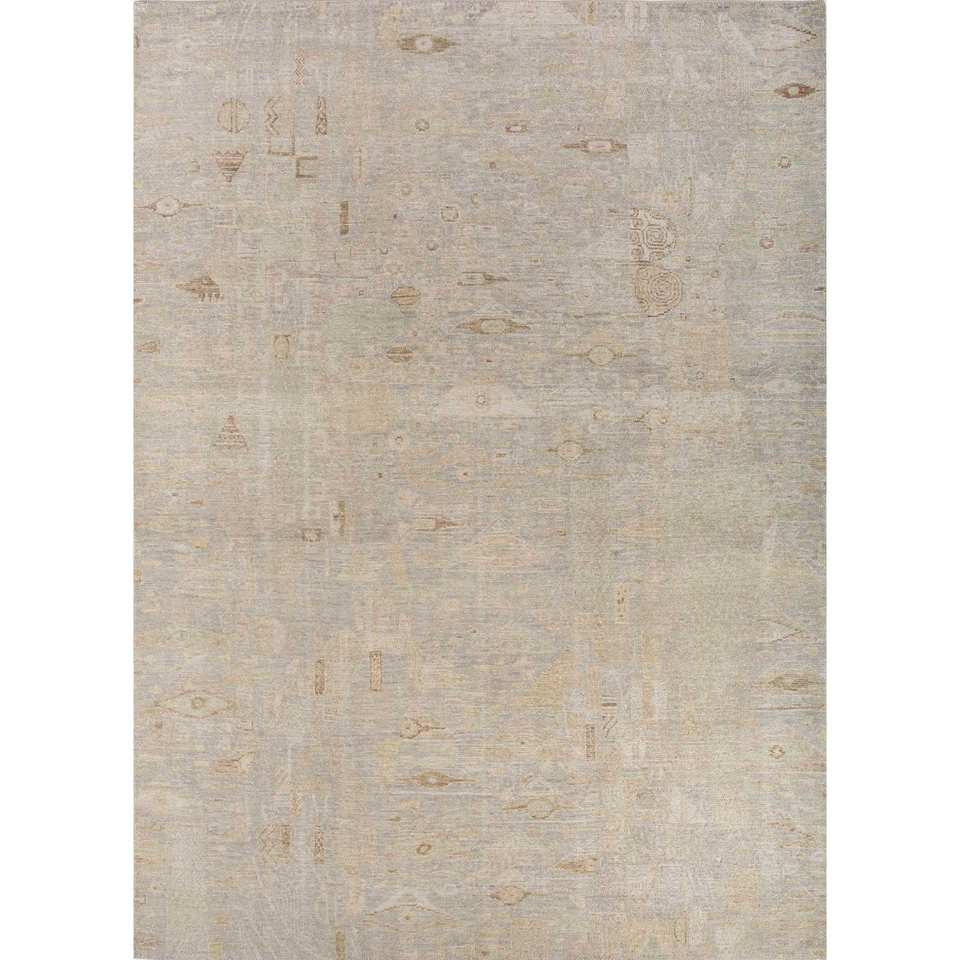 Tapis en laine noué à la main Erbe Ivory, motif géométrique abstrait, 9x12, rectangulaire, Tabriz, pour la maison, le salon, le couloir, la chambre - GS-1534