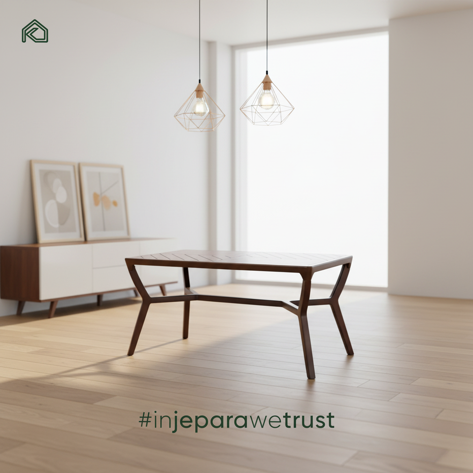 Table à manger moderne Erdan en teck massif pour salon et hôtel - Élégance naturelle et design durable