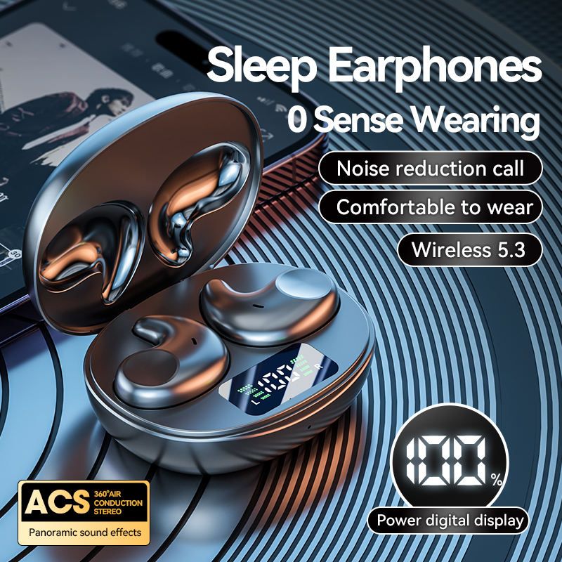 Écouteurs sans fil intelligents TWS à réduction de bruit invisible, design ergonomique, mini, longue durée de vie de la batterie, affichage numérique de la batterie, pour le sommeil