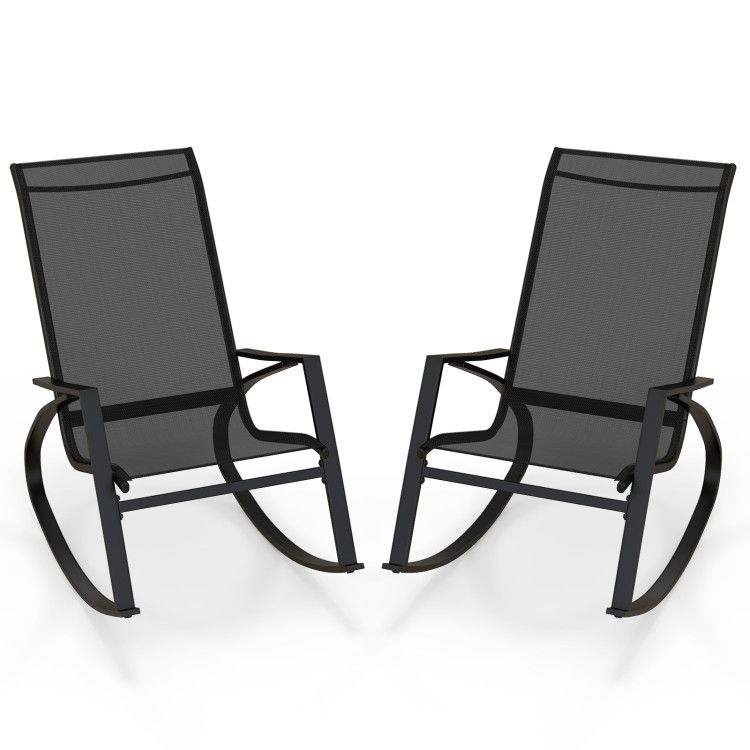 Chaises à bascule ergonomiques pour patio extérieur, 2 pièces, avec assise et dossier confortables en tissu tissé