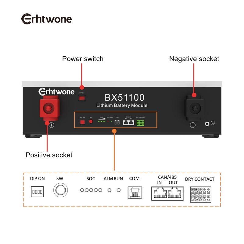 Erhtwone 5kwh batterie montée en rack solaire au lithium 51.2v 100ah 200ah empilable lifepo4 batterie de stockage d'énergie