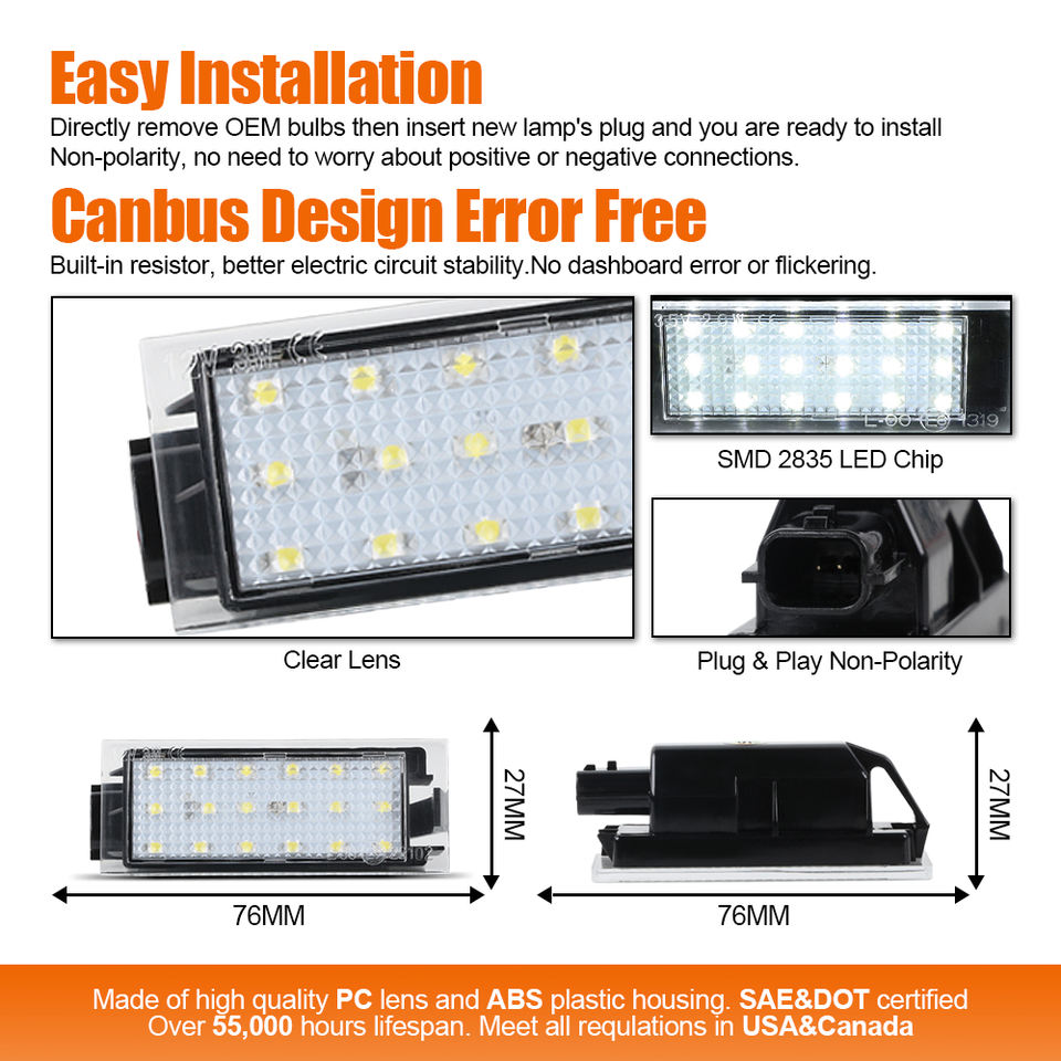 Kit d'éclairage de plaque d'immatriculation LED blanc sans erreur pour Renault Megane II III Espace IV, clignotant arrière, vente en gros