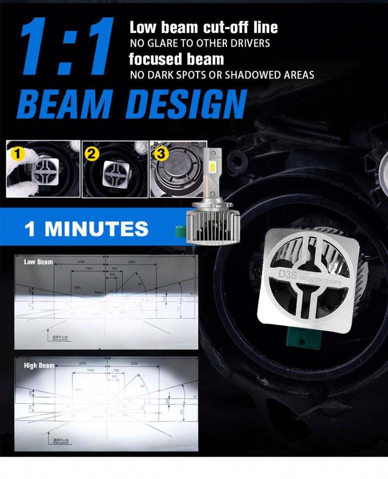 Ampoule de phare LED haute puissance sans erreur D1s D2s D3s D4s D5s D8s, pièces de rechange originales HID pour voiture, 12v 24v D1s phare LED