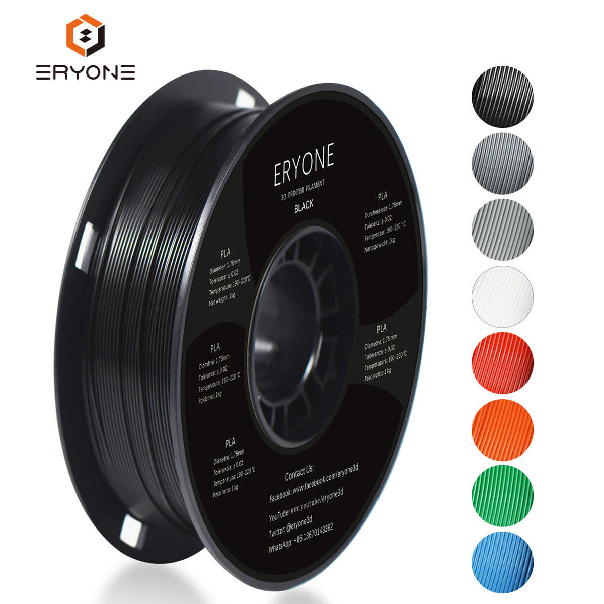 Remontoir de Filament pla, 1.75mm, 1kg, matériau première, de couleur noire, pour imprimante 3D FDM