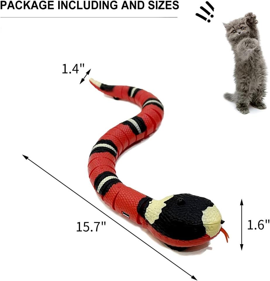 Escape Realistic Jouet rechargeable de serpent à détection intelligente interactif en forme de S pour chat Sentir automatiquement les obstacles
