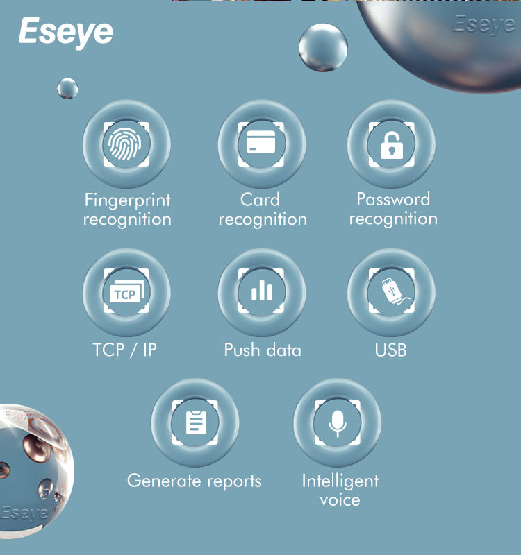 Système de gestion des présences Eseye 2,4 pouces, appareil d'enregistrement du temps, reconnaissance d'empreintes digitales et faciale, USB TCP, gestion des cartes d'identité anglaises