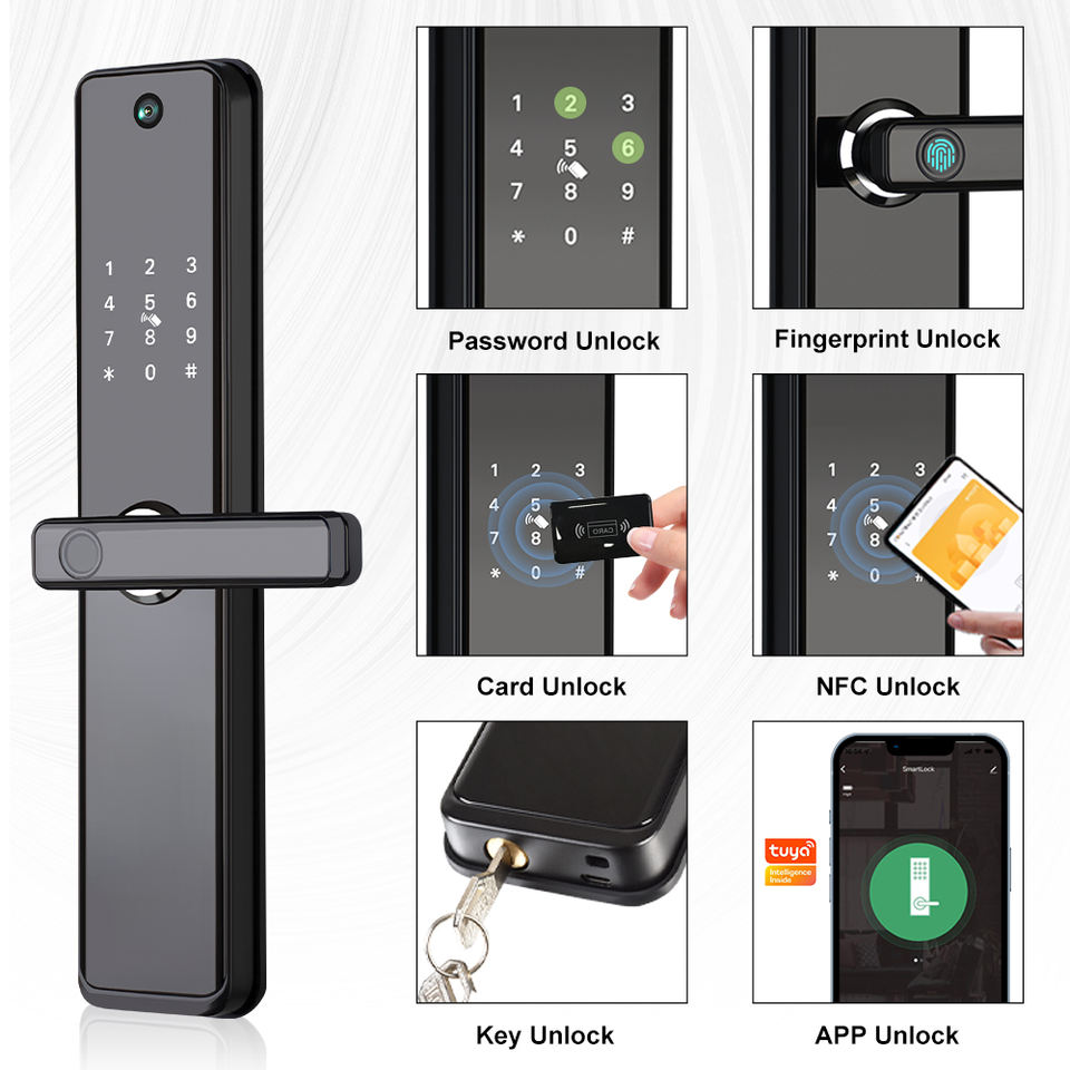 Mode de déverrouillage:APP, empreinte digitale, mot de passe, carte, clé, mot de passe temporaire