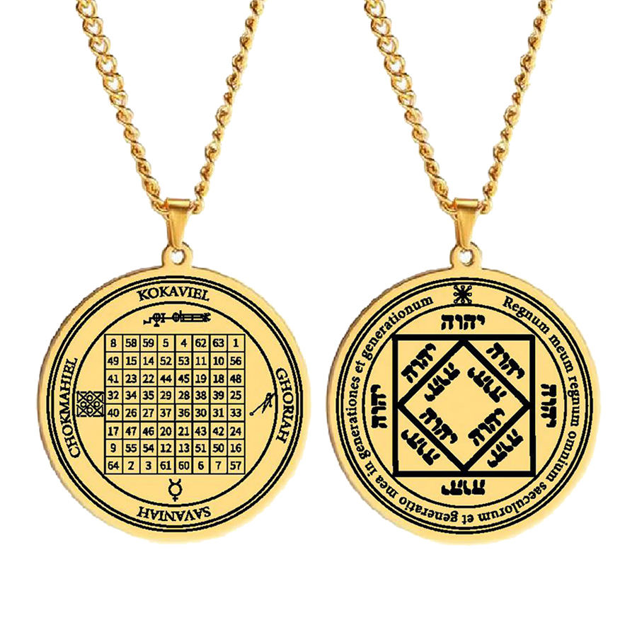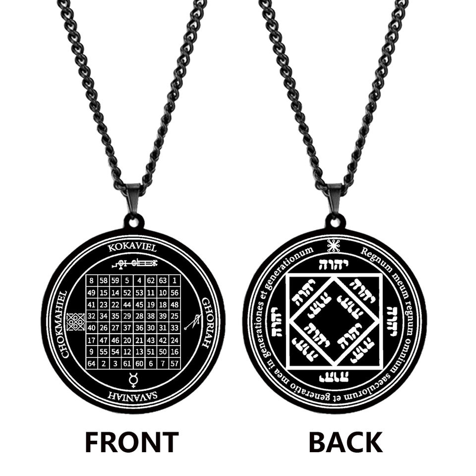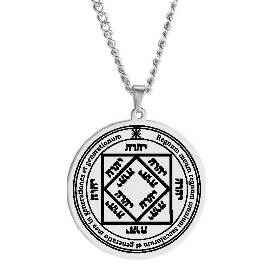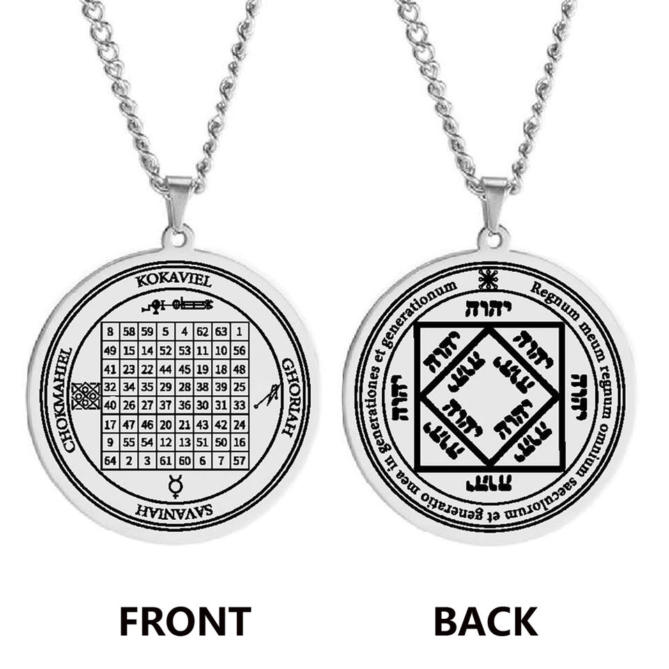 Ésotérisme Carré Magique Talisman 3ème Pentacle Du Soleil Wicca Clé de Salomon Sceau Amulette Collier Pendentif En Acier Inoxydable