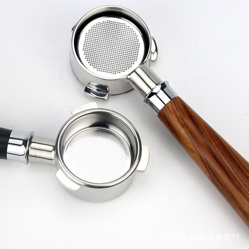 Machine à café expresso portable avec manche en bois, 51/54/58mm, sans fond, accessoires de cuisine