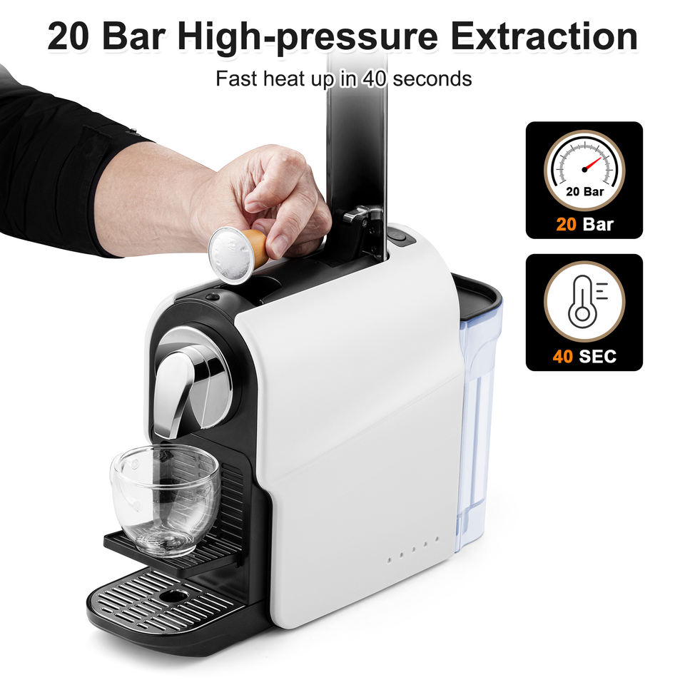Machine à dosettes d'espresso pour la maison, cafetière à capsules compacte pour dosettes Nespresso Original, pompe haute pression de 20 bars