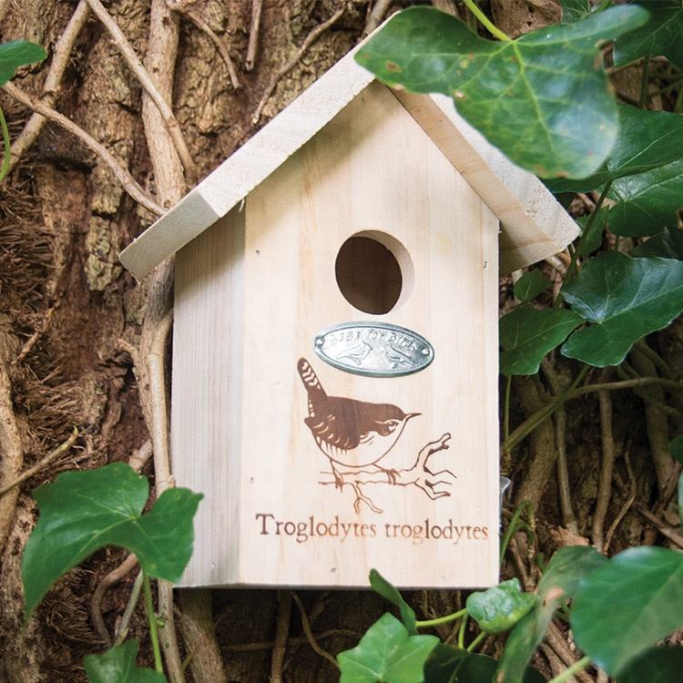 Nichoir suspendu en bois pour oiseaux de jardin, design Esschert, silhouette de titreau, vente en gros, décoration de jardin
