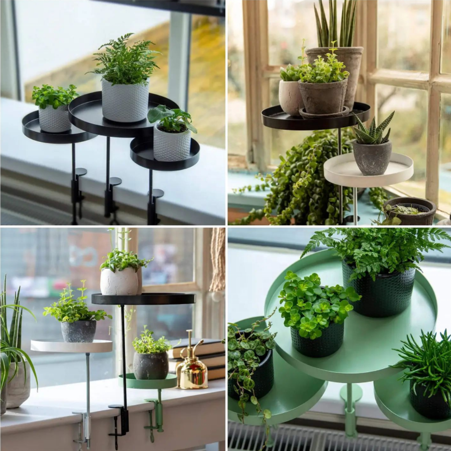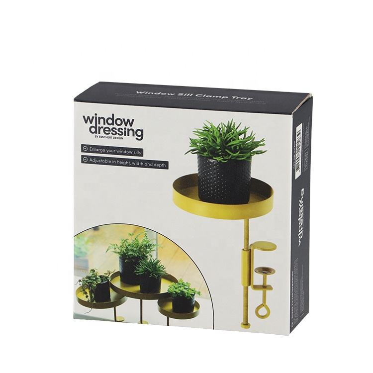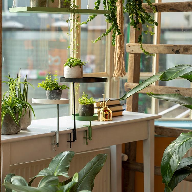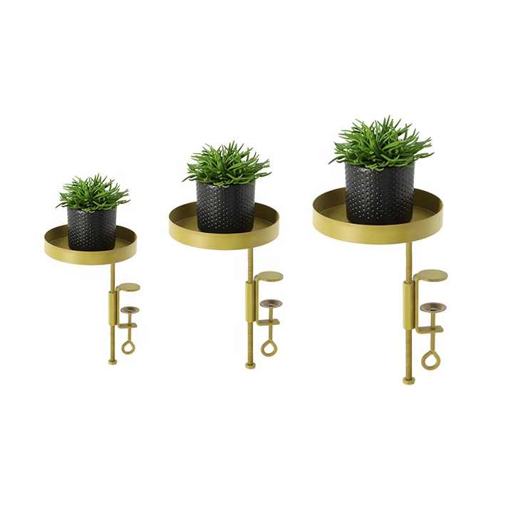 Esschert Design PY109 Easily Adjustable Heights Window Flower Plant Pot Holder Golden Table Window Dressing Clamp Tray