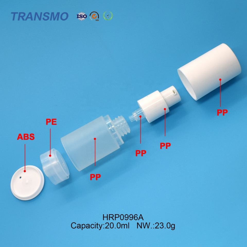 Flacon pompe pour lotion, logo personnalisé, flacon pompe sans air pour lotion, 20 ml, flacon pompe sans air rond en plastique