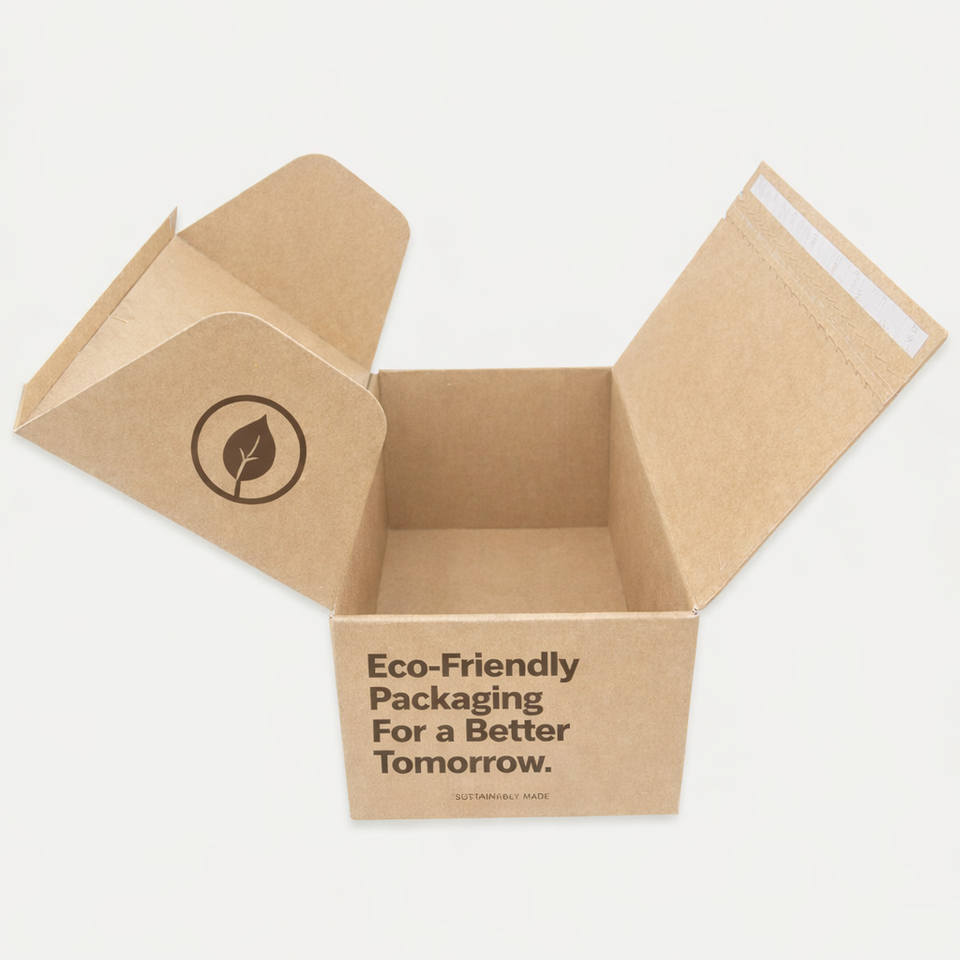 Emballage d'expédition de marque Essence Skincare avec ruban adhésif, option E B Flute, logo personnalisé