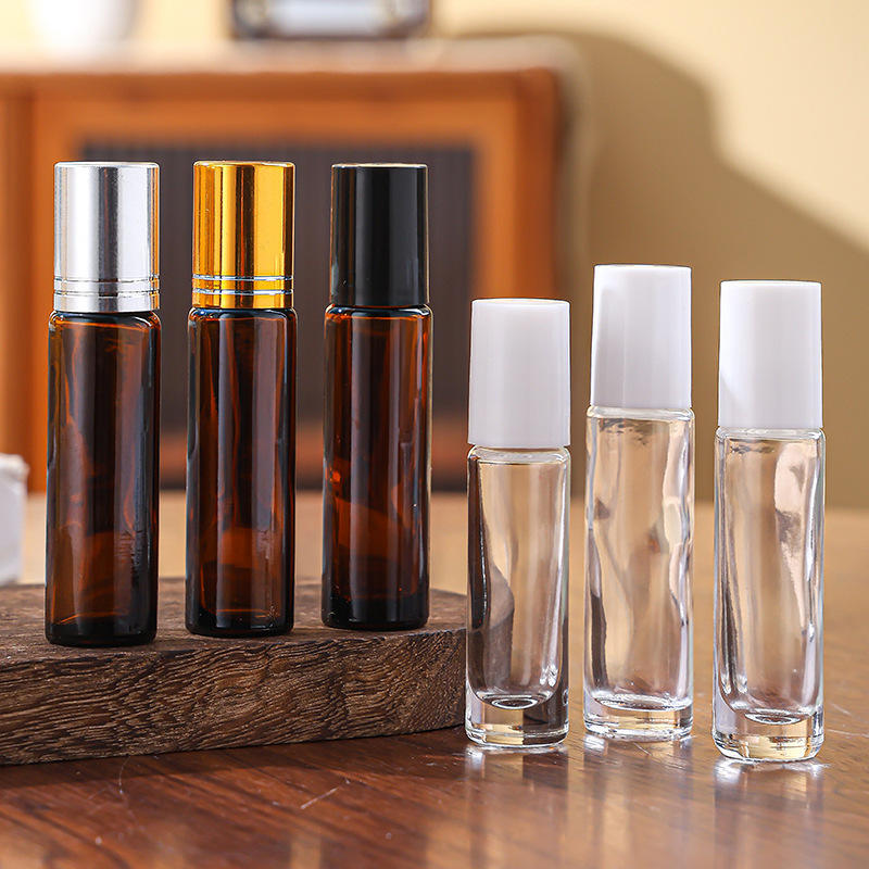 Flacon en verre ambré de 10 ml pour huile essentielle avec bouchon en aluminium/plastique, applicateur d'aromathérapie pour parfum
