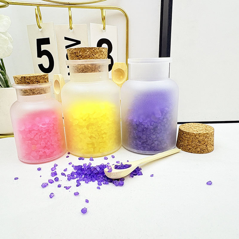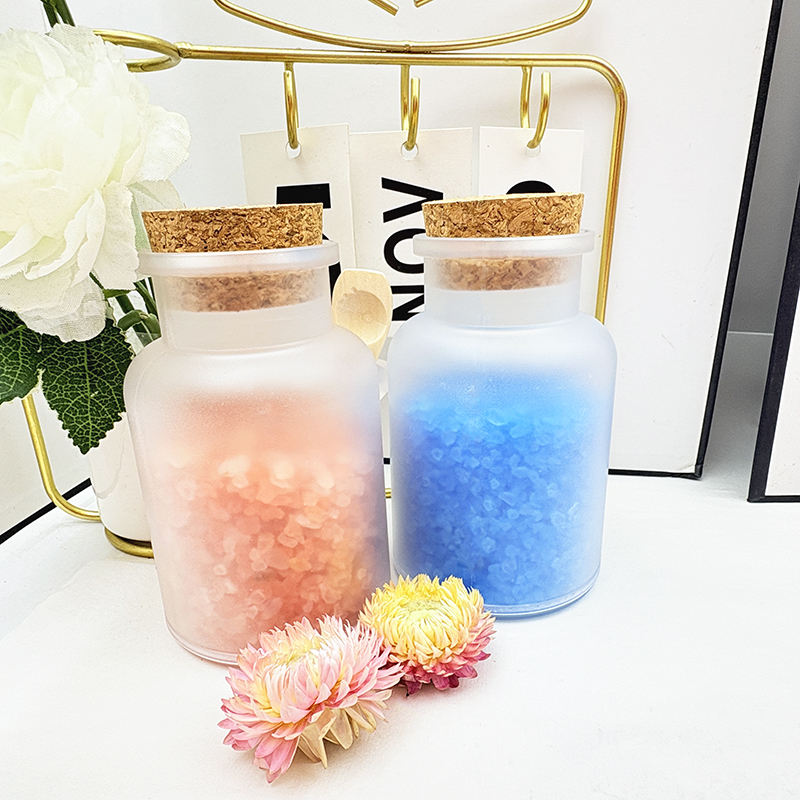 Sels de bain aux huiles essentielles pour le soin du corps, bain de sel de la mer Morte et de sel d'Epsom, sels de bain biologiques contenant des fleurs de rose et de lavande.
