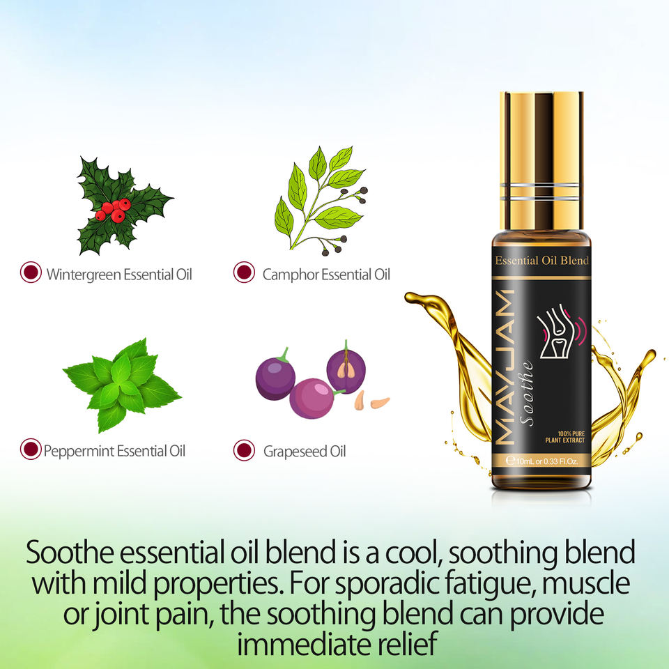 Arbre de thé, Eucalyptus, Lavande, Encens, Menthe poivrée, Wintergreen, Ylang-ylang, Camphre, Huile d'amande douce, Géranium, Citronnelle, Huile de pépins de raisin
