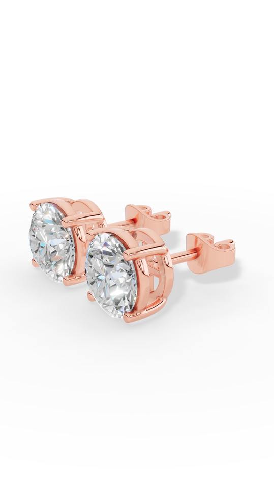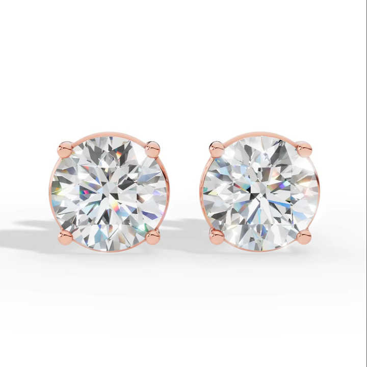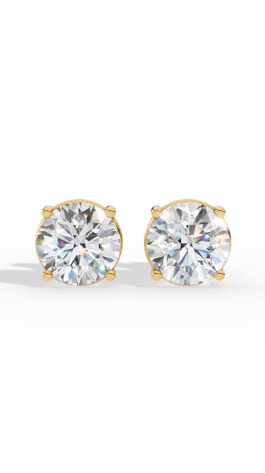 Boucles d'oreilles clous solitaires essentielles en diamant de laboratoire taille ronde à quatre griffes, or 10K, bijoux fins de luxe, fournisseur en gros