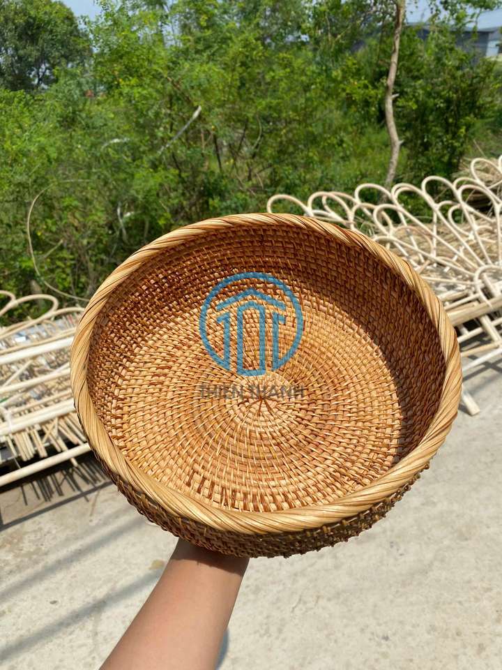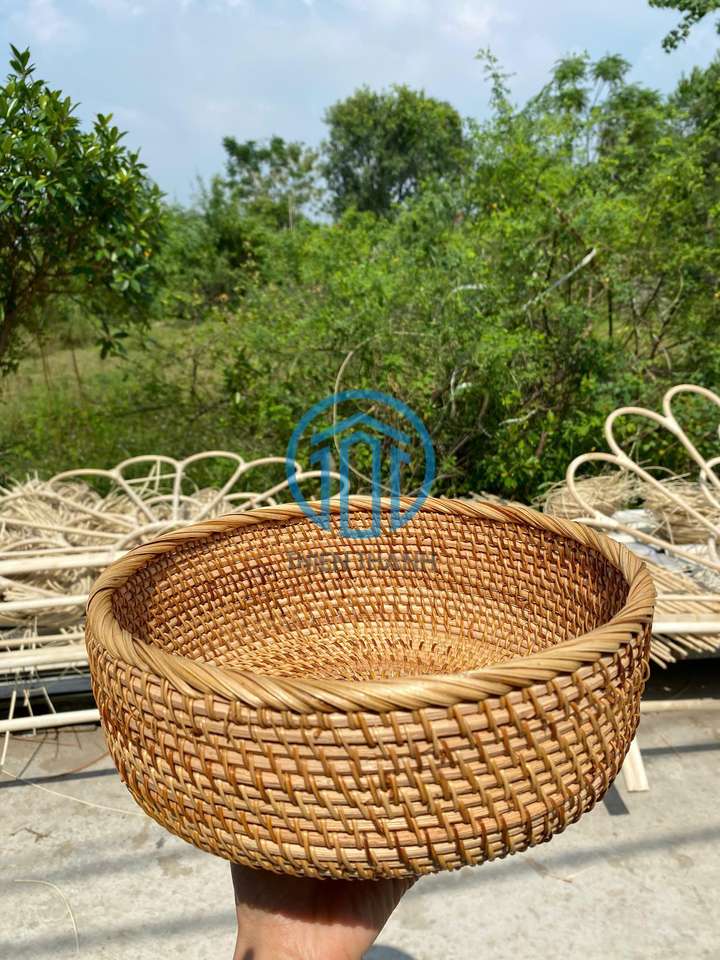 Panier à fruits en rotin tissé à la main, bord ondulé décoratif, bol de rangement en osier pour table à manger et décoration intérieure