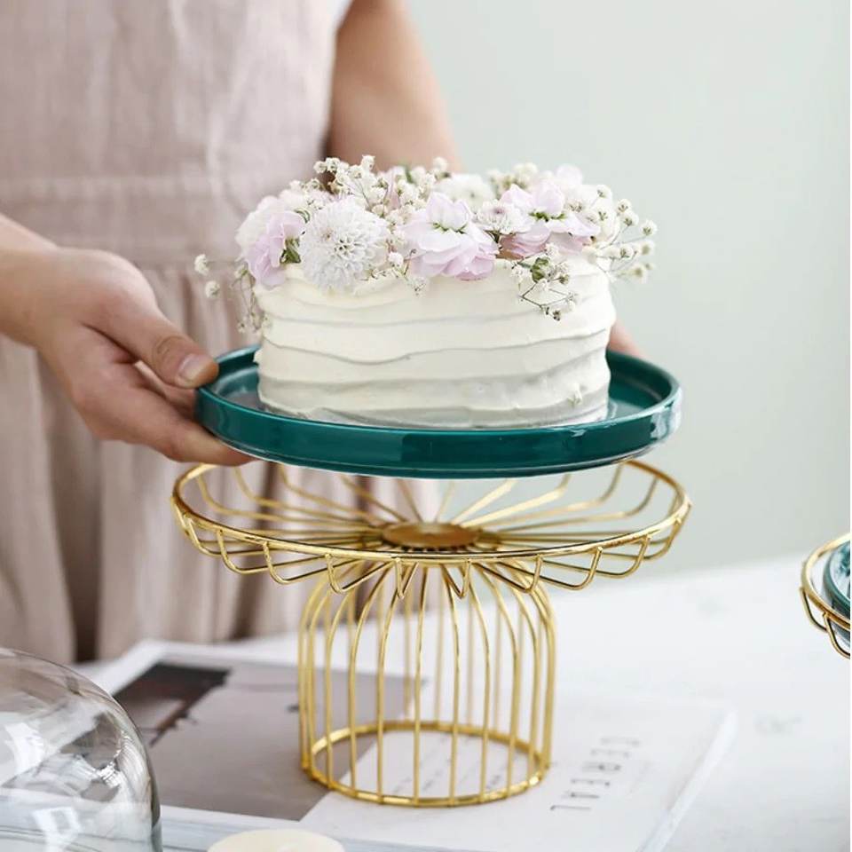 Thème établi belle circulaire vente chaude support à gâteau en métal plaqué or créatif moderne gâteau et pâtisseries support gâteau