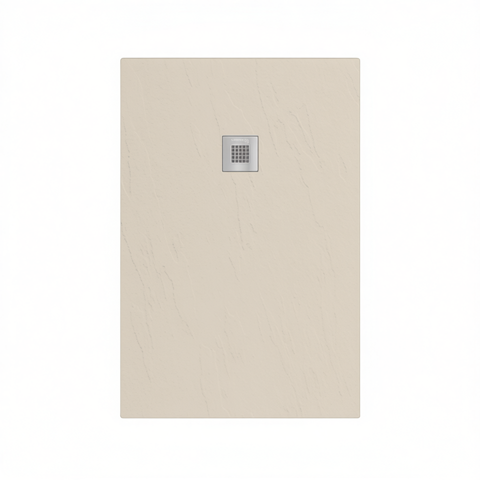 Receveur de douche rectangulaire Estasi 80 x 110 cm couleur sable avec système de drainage pour salle de bain