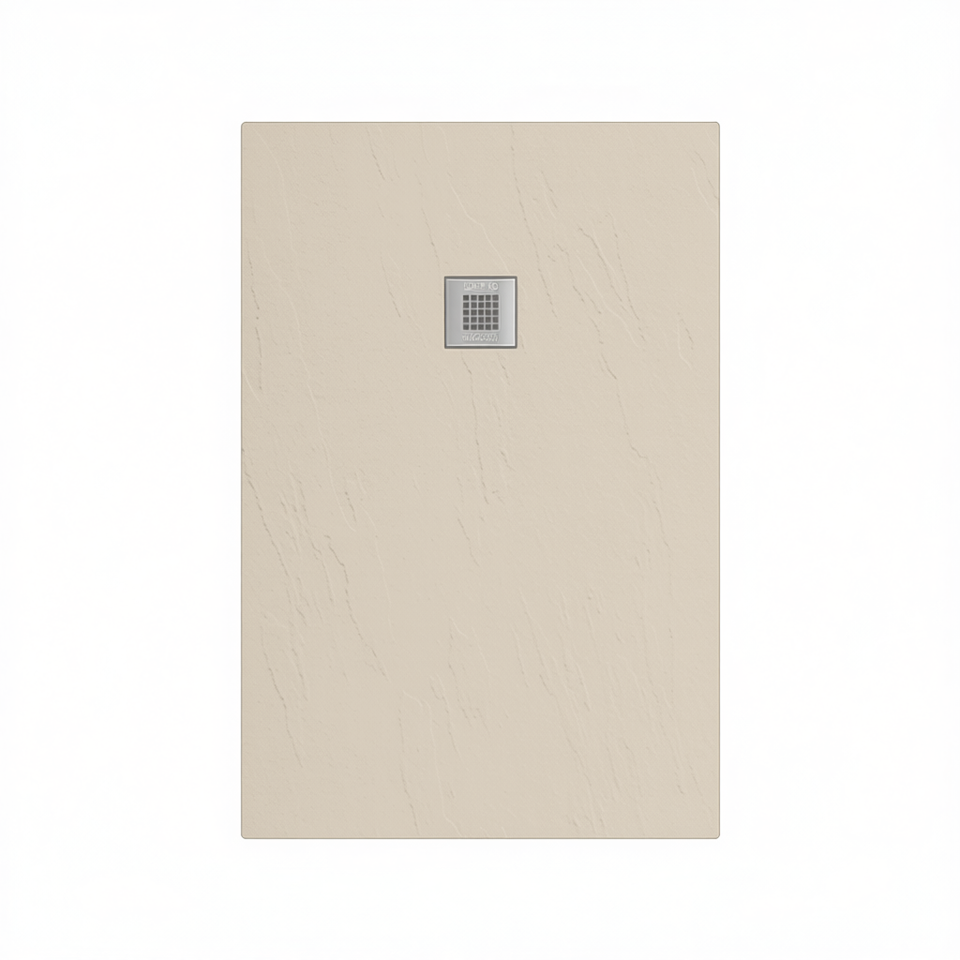 Receveur de douche rectangulaire Estasi 90 x 140 cm couleur sable avec système de drainage pour salle de bain