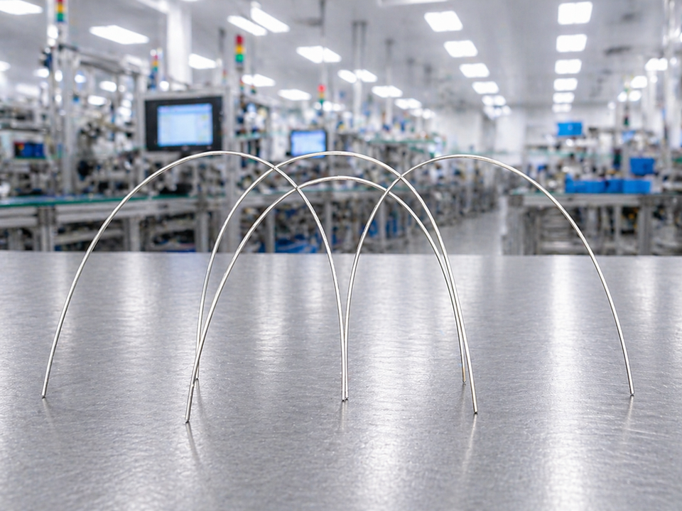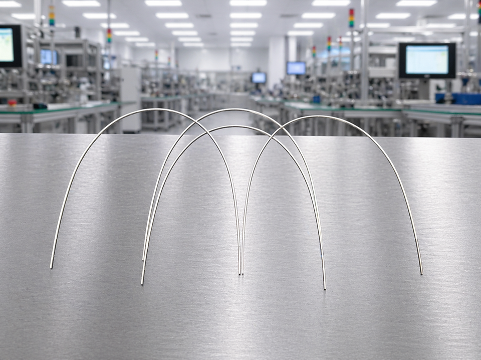 Arcs esthétiques en NiTi et en acier inoxydable, revêtus d'une couche de PTFE.
