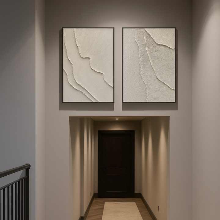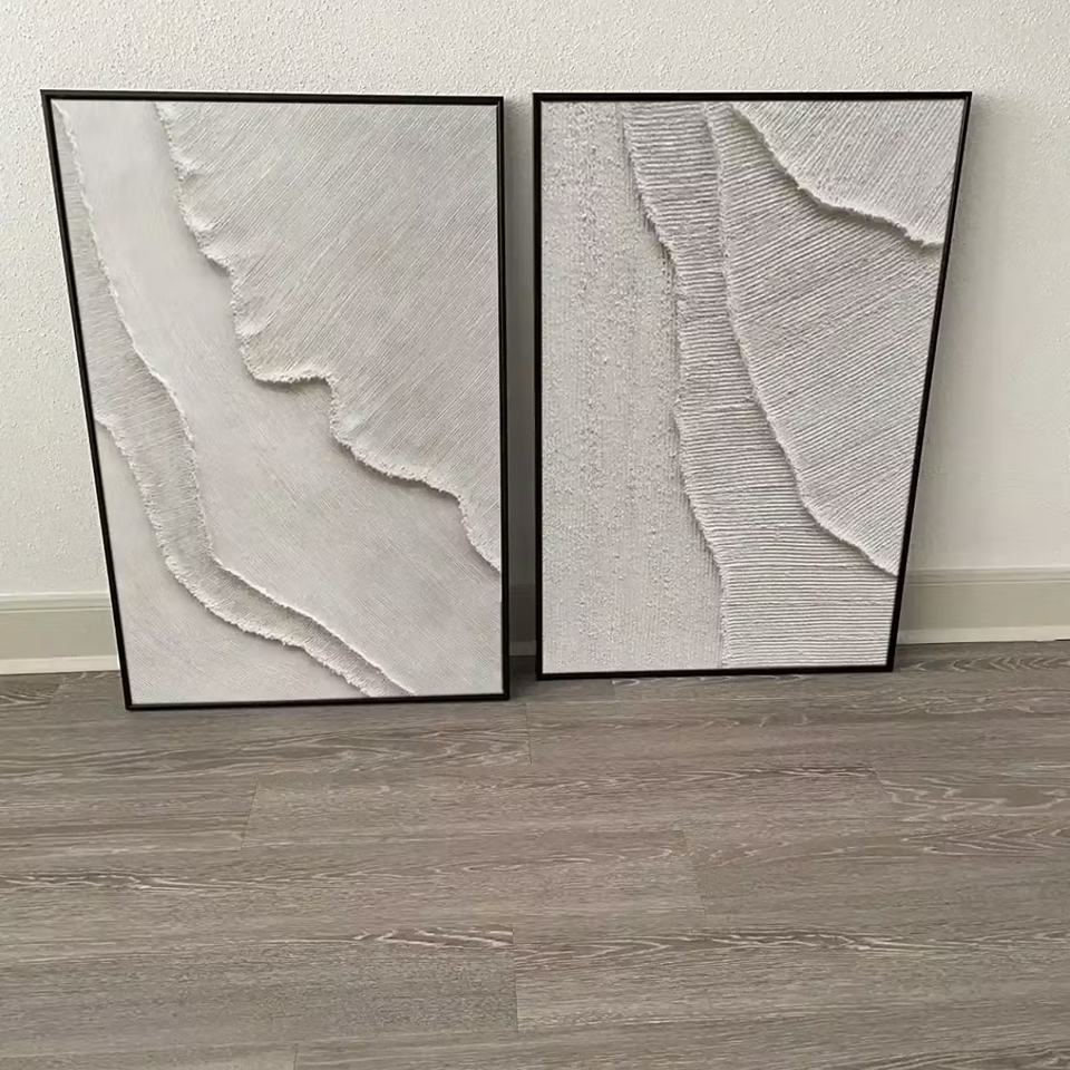 Peinture acrylique abstraite minimaliste texturée sur toile, motif nature morte sur pierre gravée, grande œuvre d'art murale pour salon, chambre et décoration intérieure
