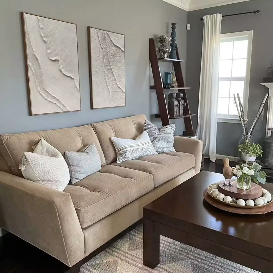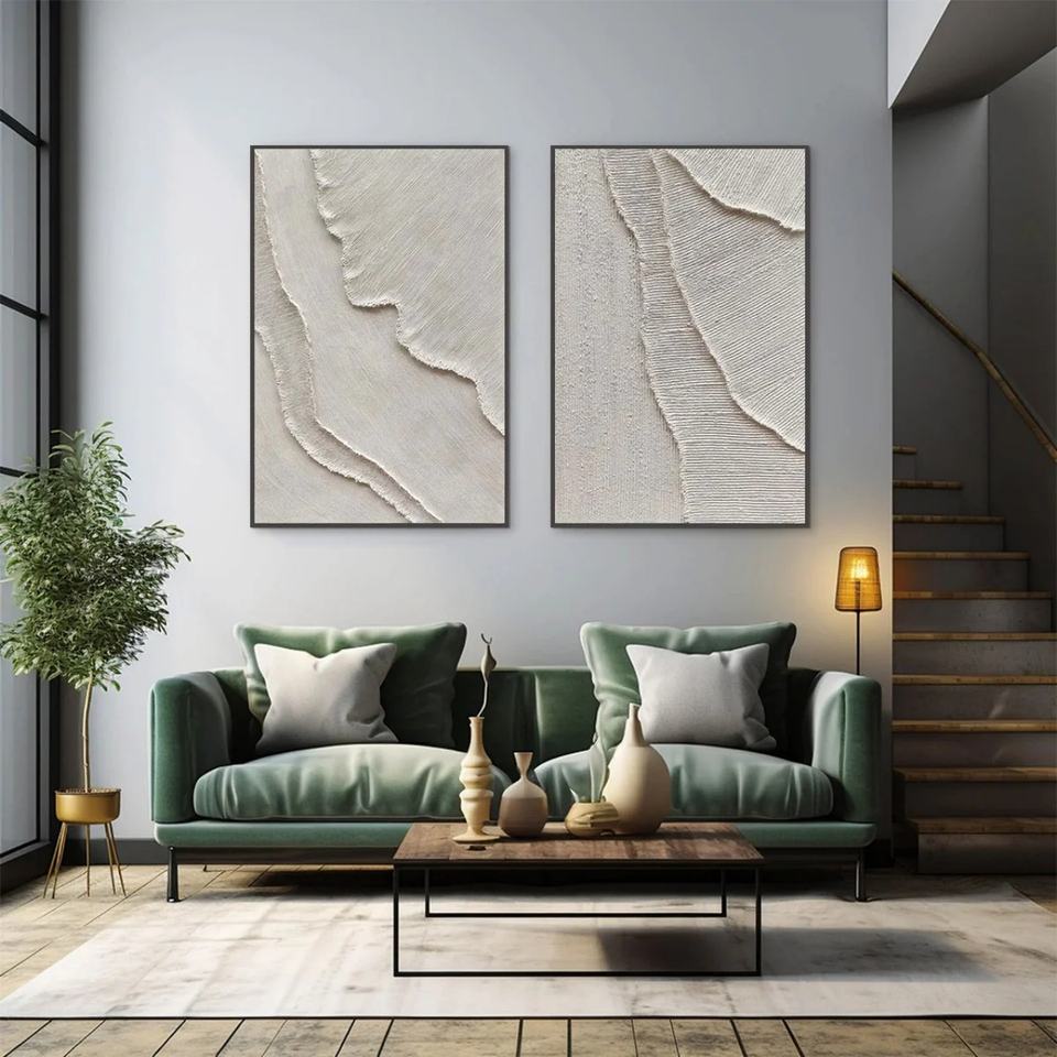 Peinture à l'huile et acrylique abstraite minimaliste texturée gravée sur pierre, diptyque, grande taille, neutre, pour décoration murale d'hôtel et de maison