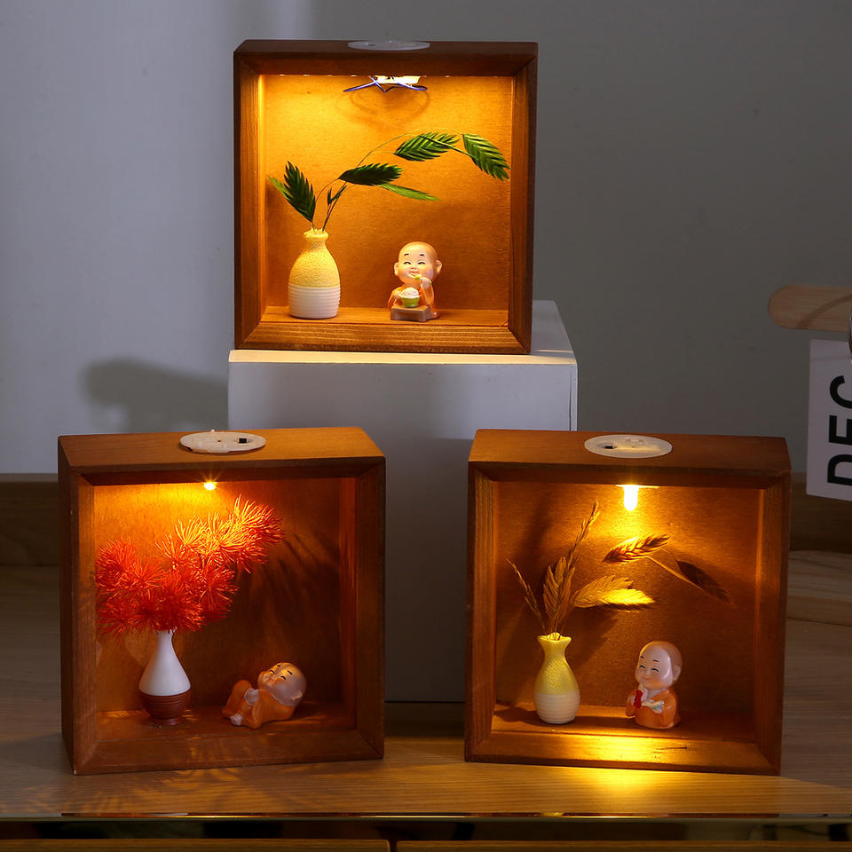 Cadre photo créatif avec fleurs éternelles, fleurs préservées en dessin animé, fini en trois dimensions, carré creux, ornement de bureau d'intérieur