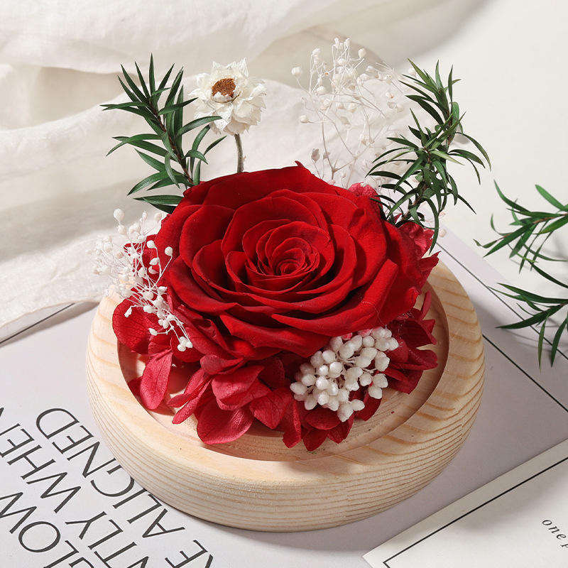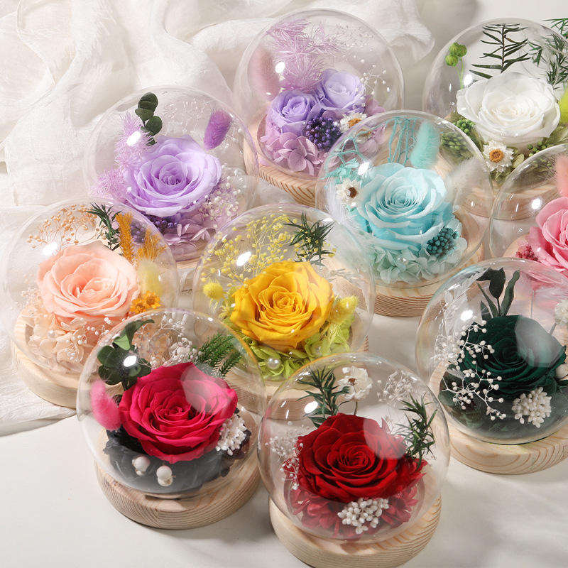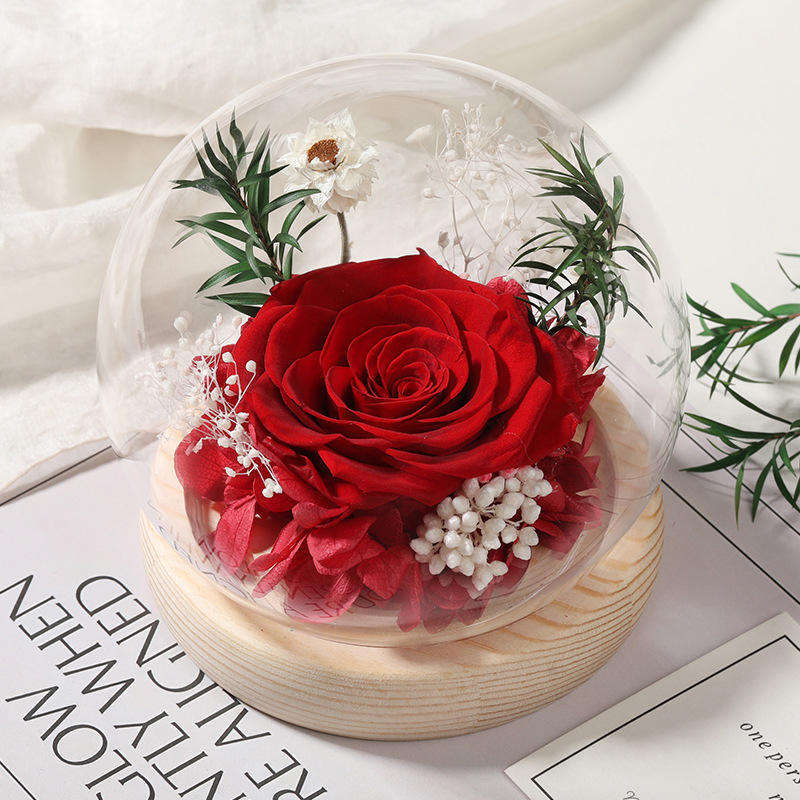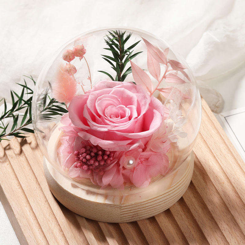 Fleur éternelle sous cloche en verre, idée cadeau pour la Saint-Valentin, Noël, anniversaire, rose éternelle conservée sous cloche en verre