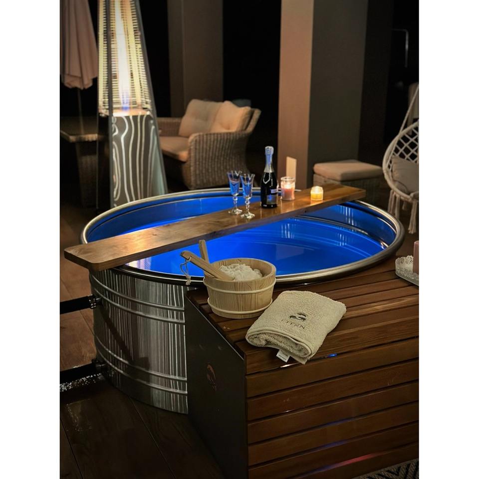 Bain à remous extérieur Eternal Modern 150-Basen avec système de contrôle Balboa, 4 places, PVC, acier inoxydable 316L, bois exotique Bangkirai, massage