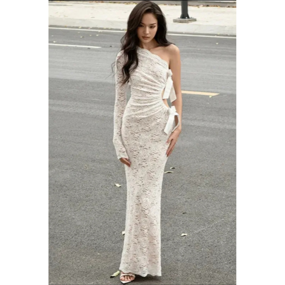 Robe longue éthérée à une épaule en dentelle florale avec découpes latérales et liens, voici une analyse approfondie du produit spécifique à cette robe.