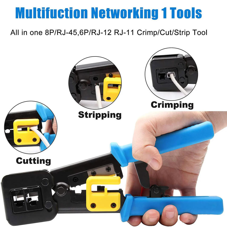 Pince à sertir multifonctionnelle pour câble réseau Ethernet 6P/8P Cat5e/Cat6 EZ RJ11/RJ12 /RJ45 Outil de sertissage pour dénuder les fils