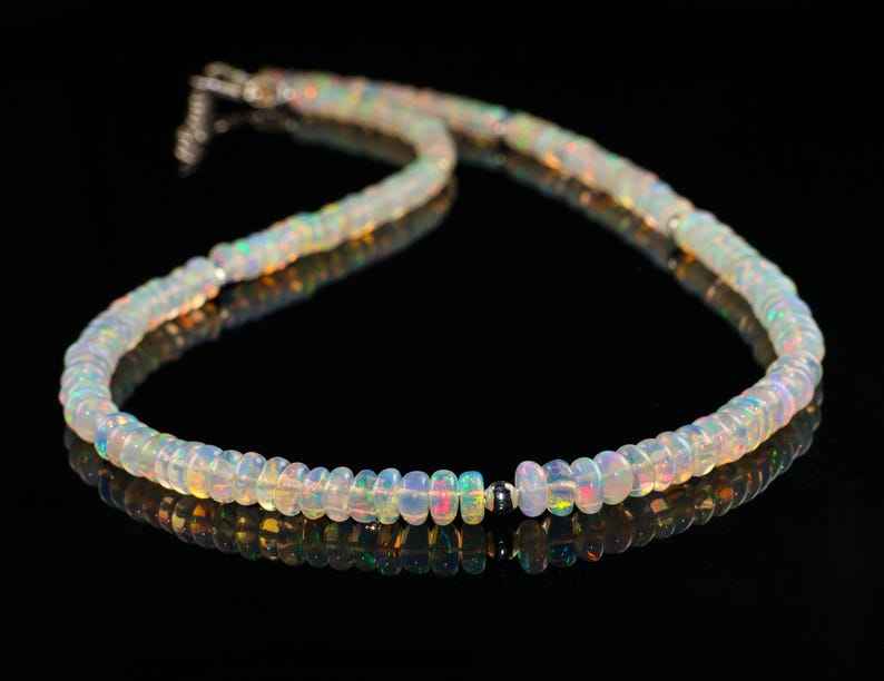Keyword:Ethiopian Opal Beaded Glowing Expansive 925 Silver Necklace Crafted