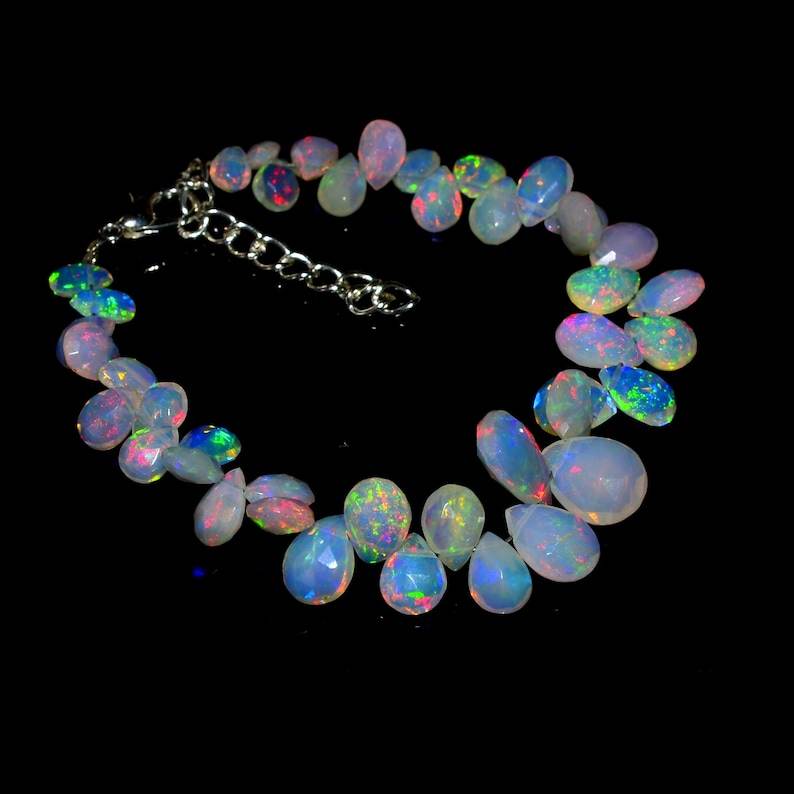 Ethiopian Opal Necklace Faceted Teardrop Beads Adjustable Length Silver Multi Rainbow Beaded Gemstone Jewelry Women Handmade