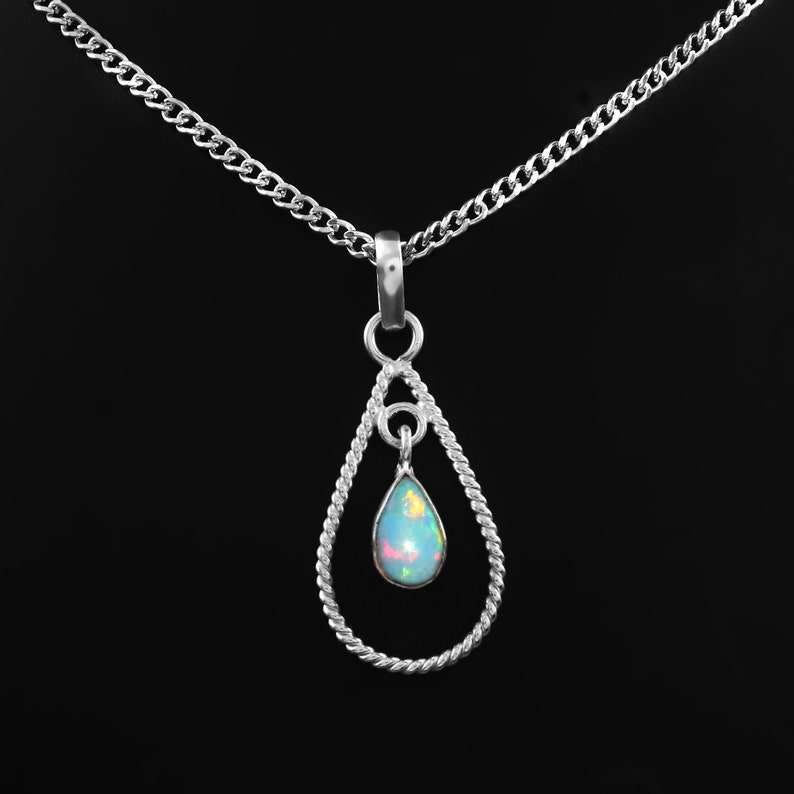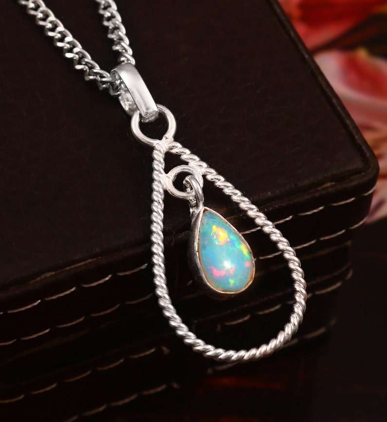 Ethiopian Opal Pendant 925 Silver October Birthstone Necklace Multi Fire Opal Handmade Pendant For Women Opal Jewelry