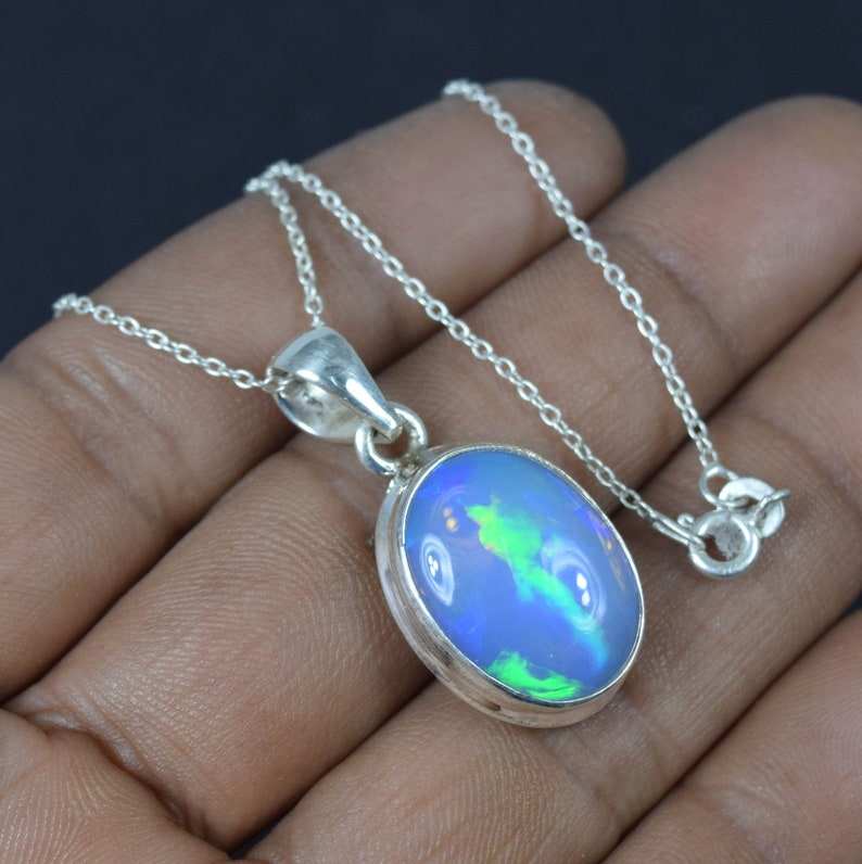 Ethiopian Opal Pendant Sterling Silver Gemstone Necklace October Birthstone Handmade Elegant Unique Gift For Women